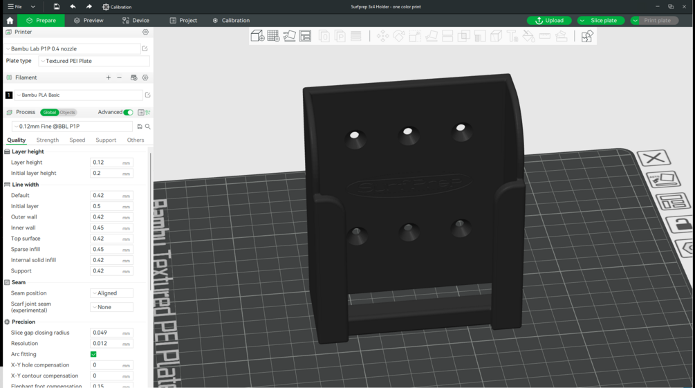 One .3MF file for printing a one color holder for the SurfPrep 3X4 Electric Ray Sander